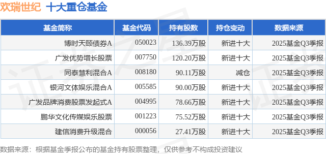 爱体育- 爱体育官方网站- APP下载11月24日欢瑞世纪涨997%博时天颐债券A基金重仓该股
